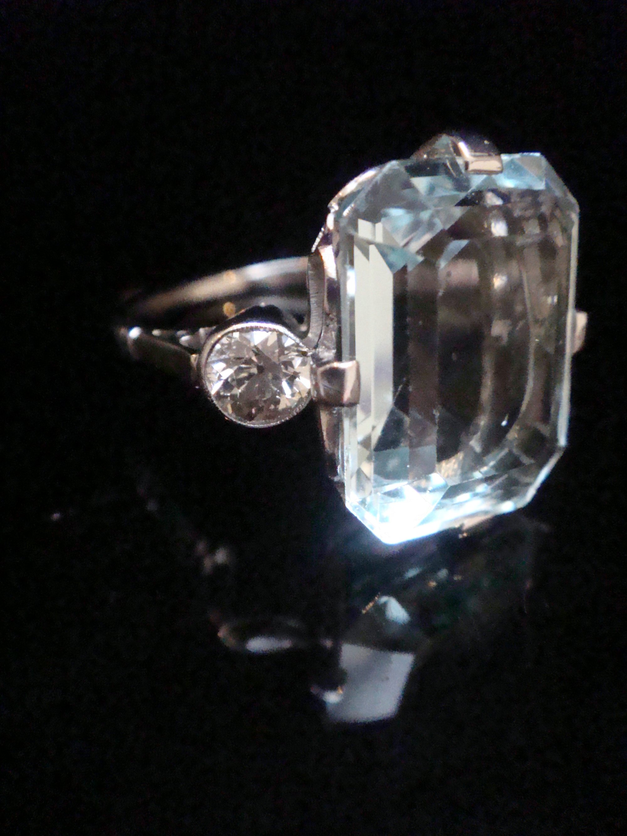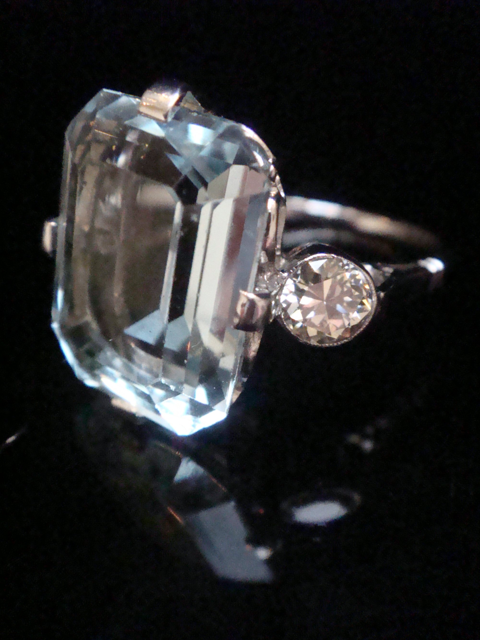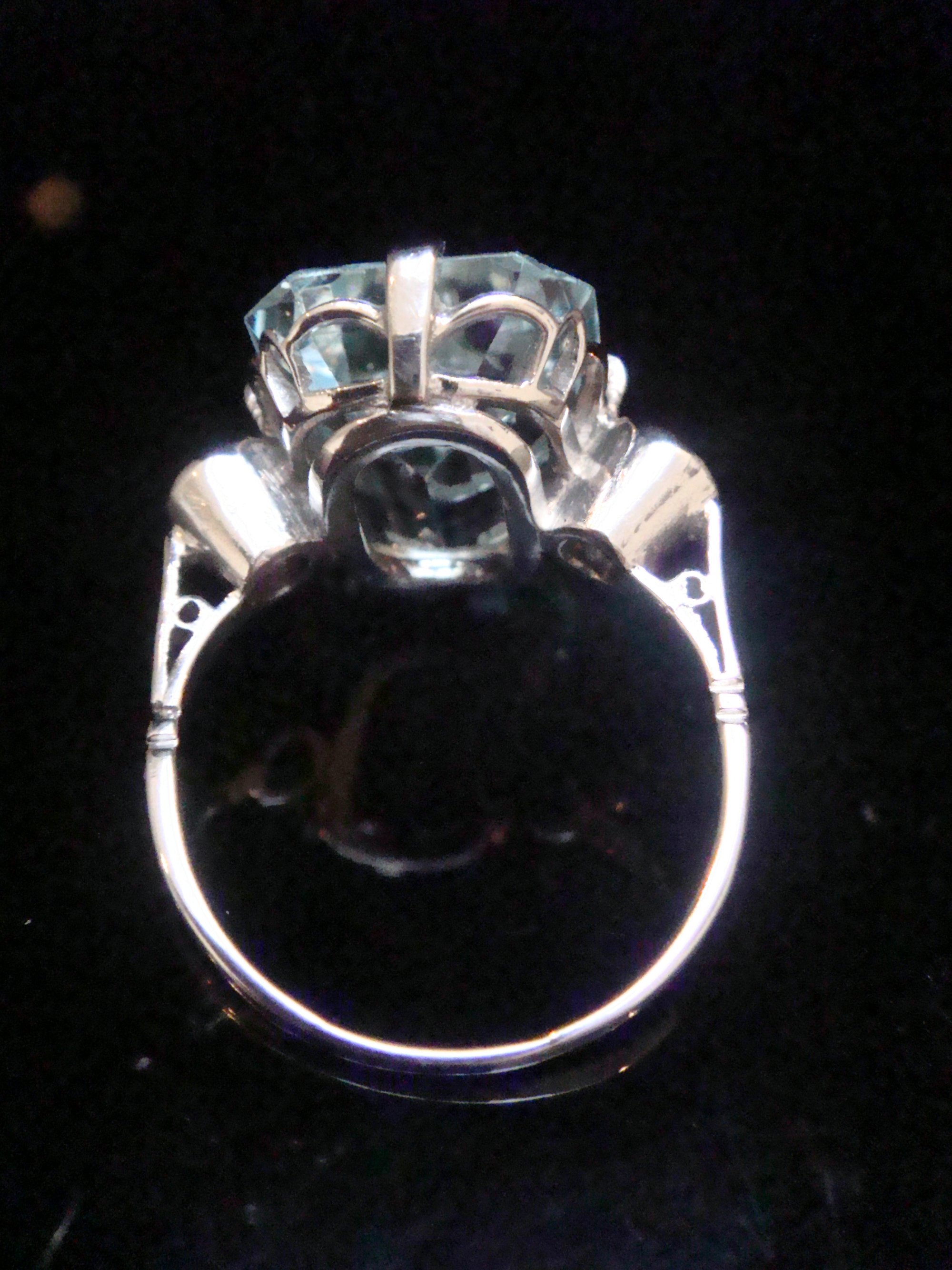 1930s 18CT WHITE GOLD NATURAL 7ct AQUAMARINE AND DIAMOND 0.60ct RING