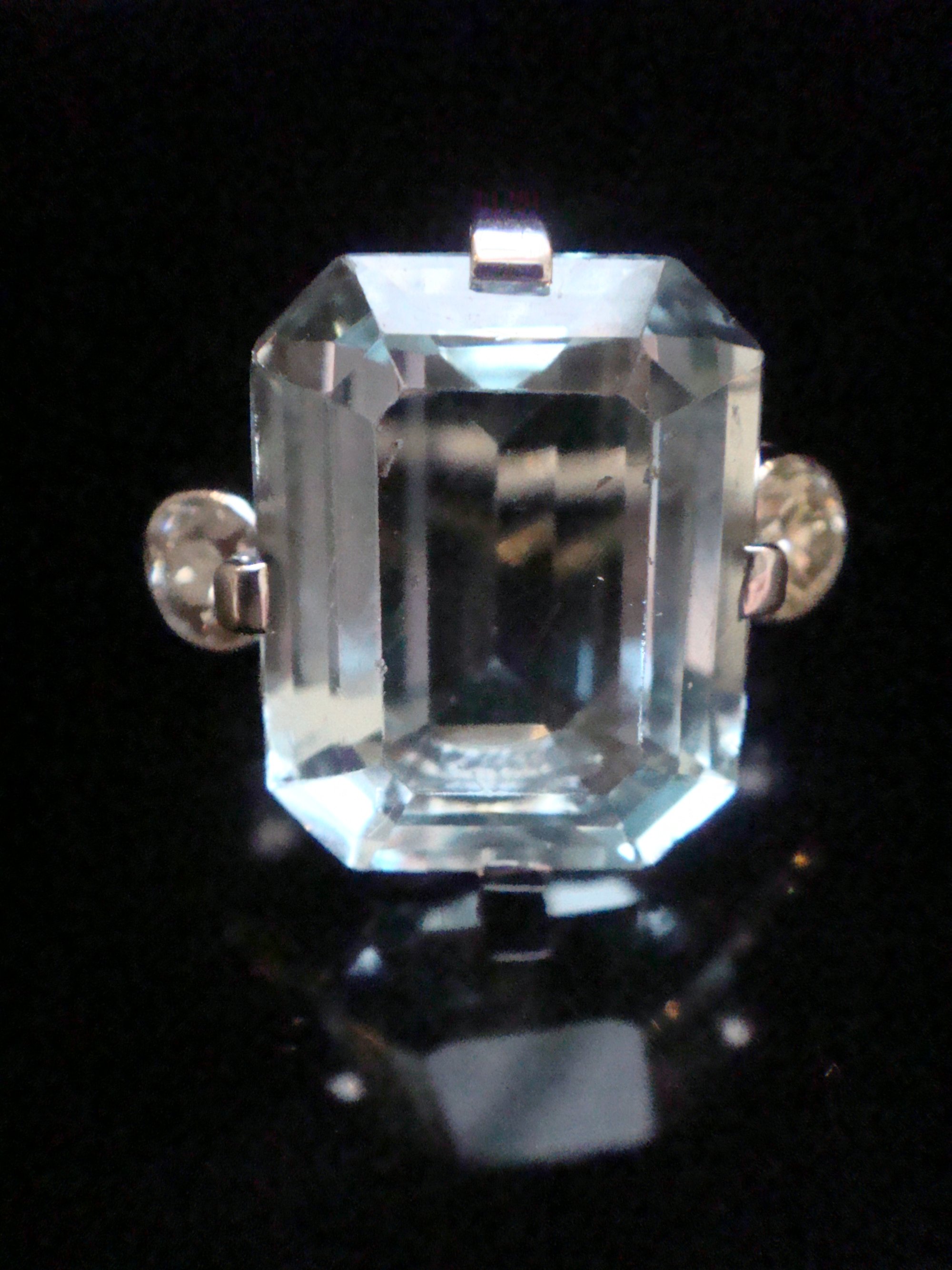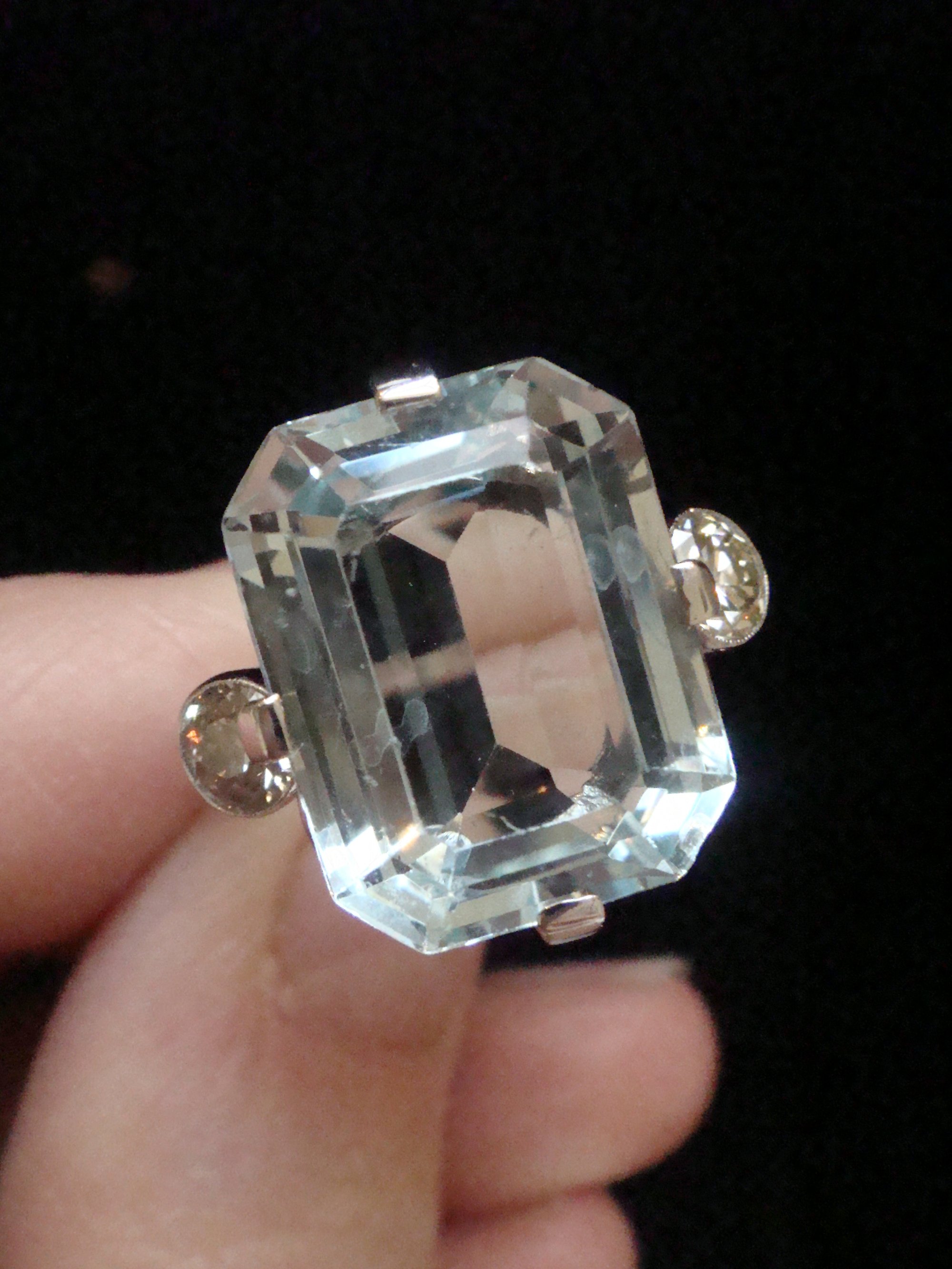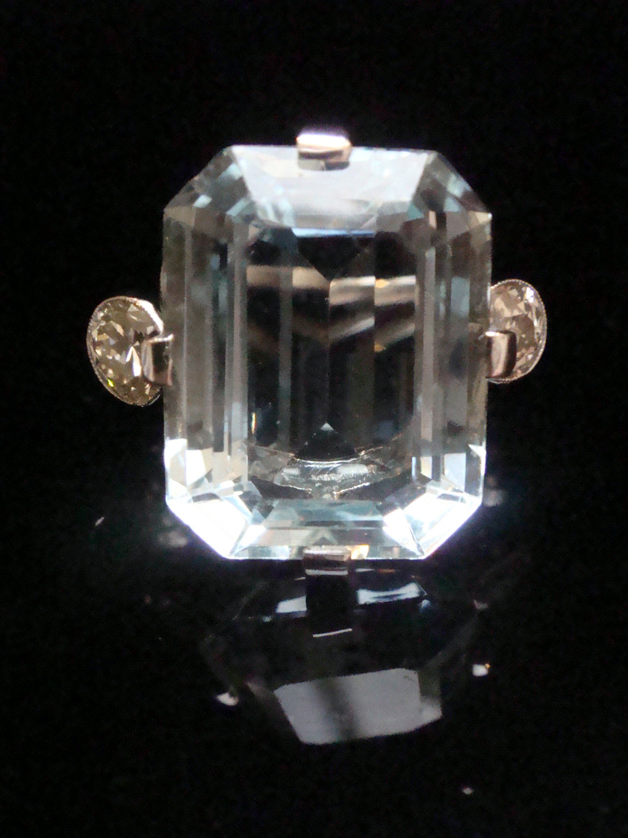 1930s 18CT WHITE GOLD NATURAL 7ct AQUAMARINE AND DIAMOND 0.60ct RING
