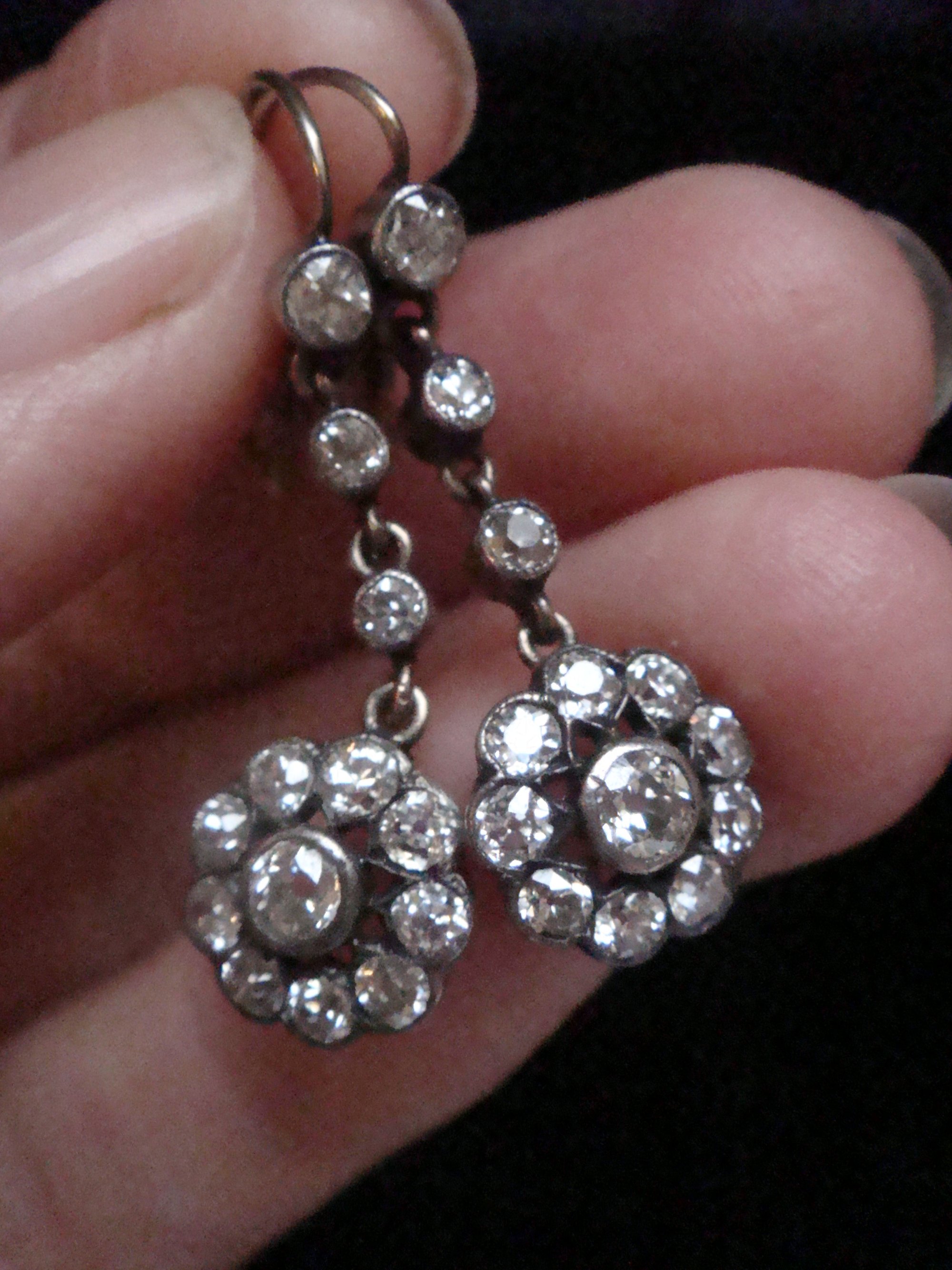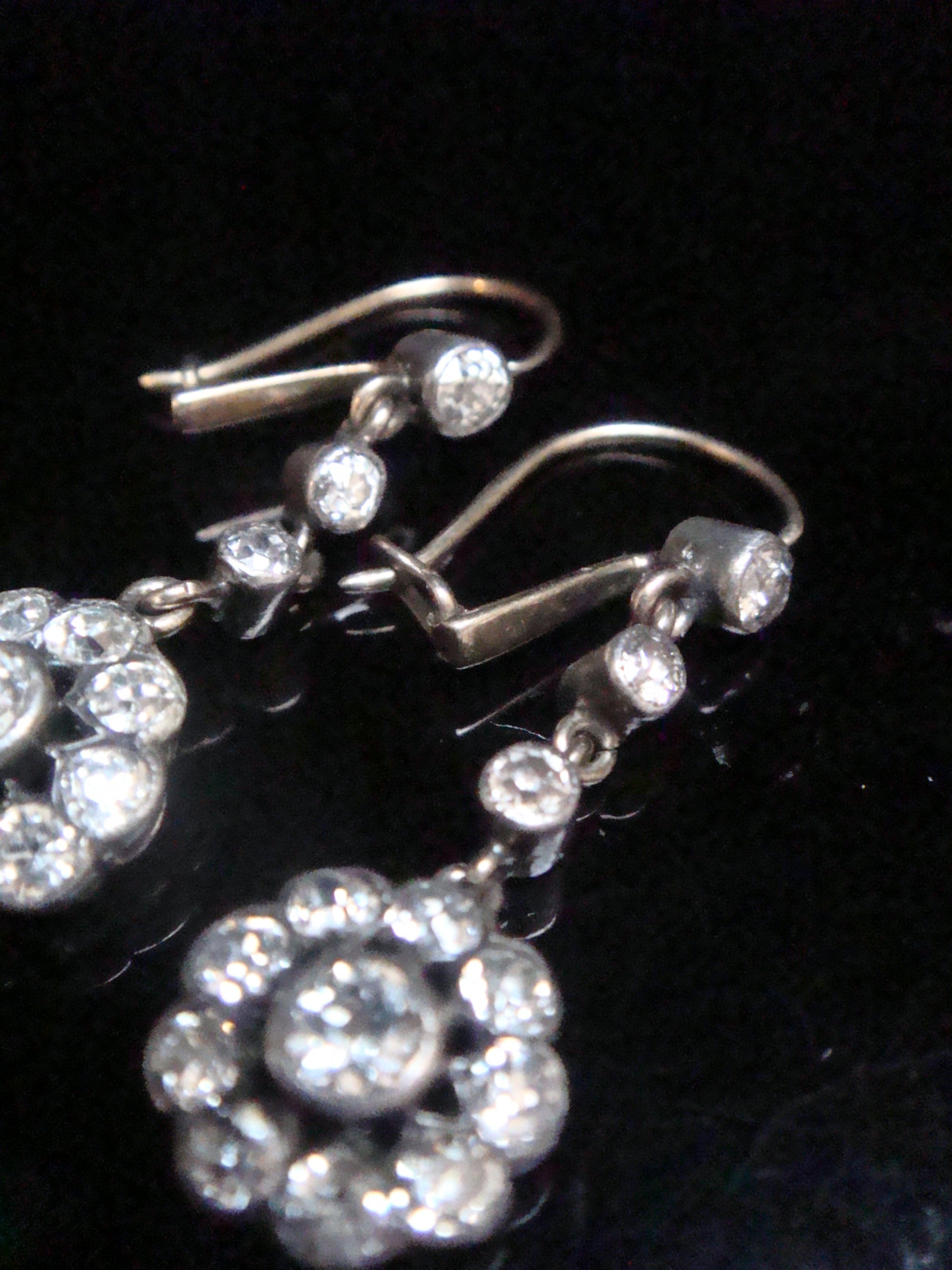 EDWARDIAN 18CT SILVER OLD CUT DIAMOND 1.80ct DROP EARRINGS PIERCED EARS