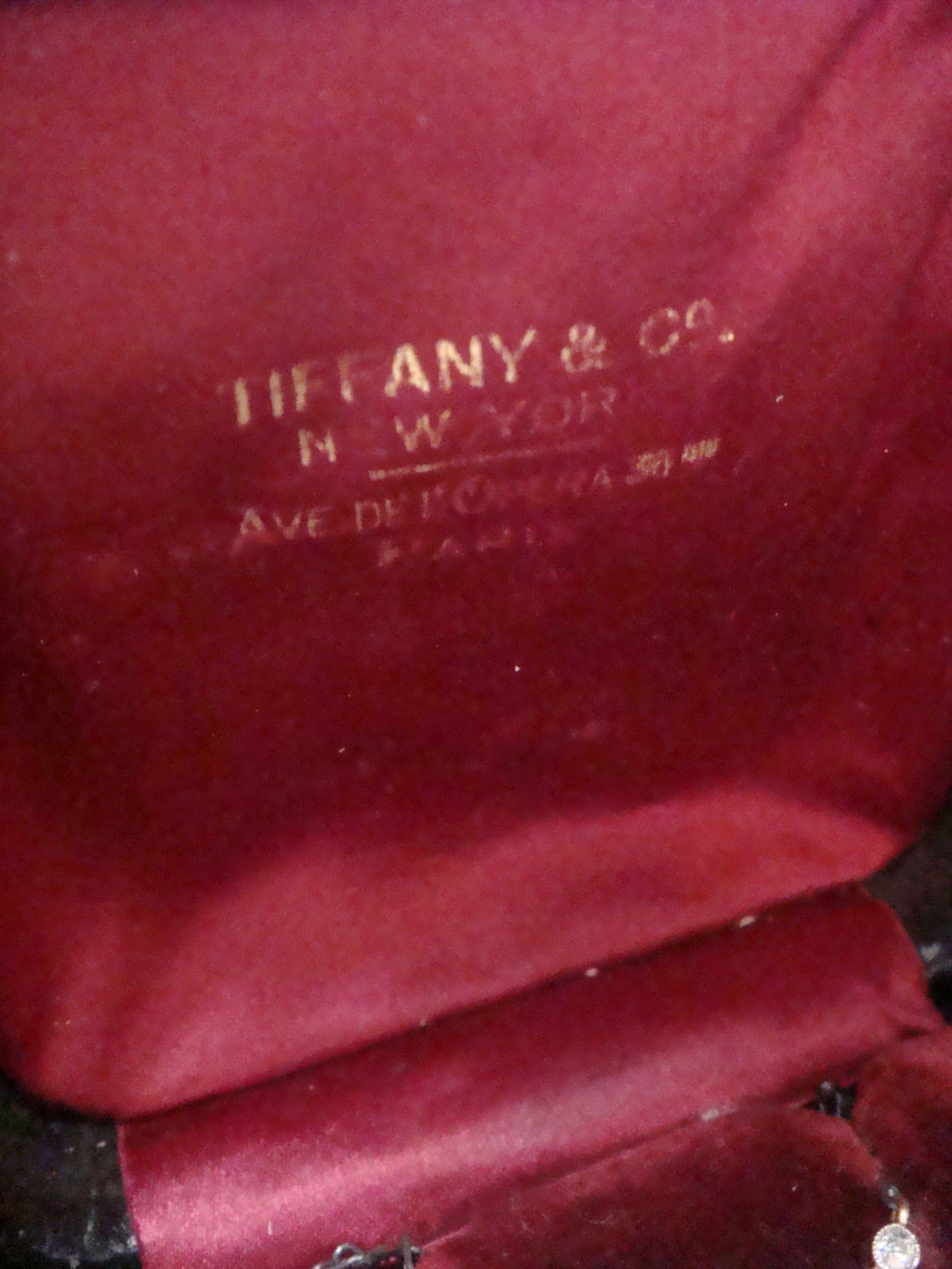 Still housed in its original and fitted red velvet box stating Tiffany and Co New York Ave De L'opera Paris