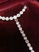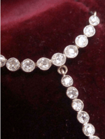 A stunning Edwardian Silver 18ct and Platinum diamond necklace in a fitted box stating Tiffany and Co New York. The necklace is fitted to this box, it is housed in its original box however the necklace is not hallmarked for Tiffany- typical for its age, it holds no hallmarks however this is believed to be an original Tiffany piece. I am listing at a price for the item not including its provenance