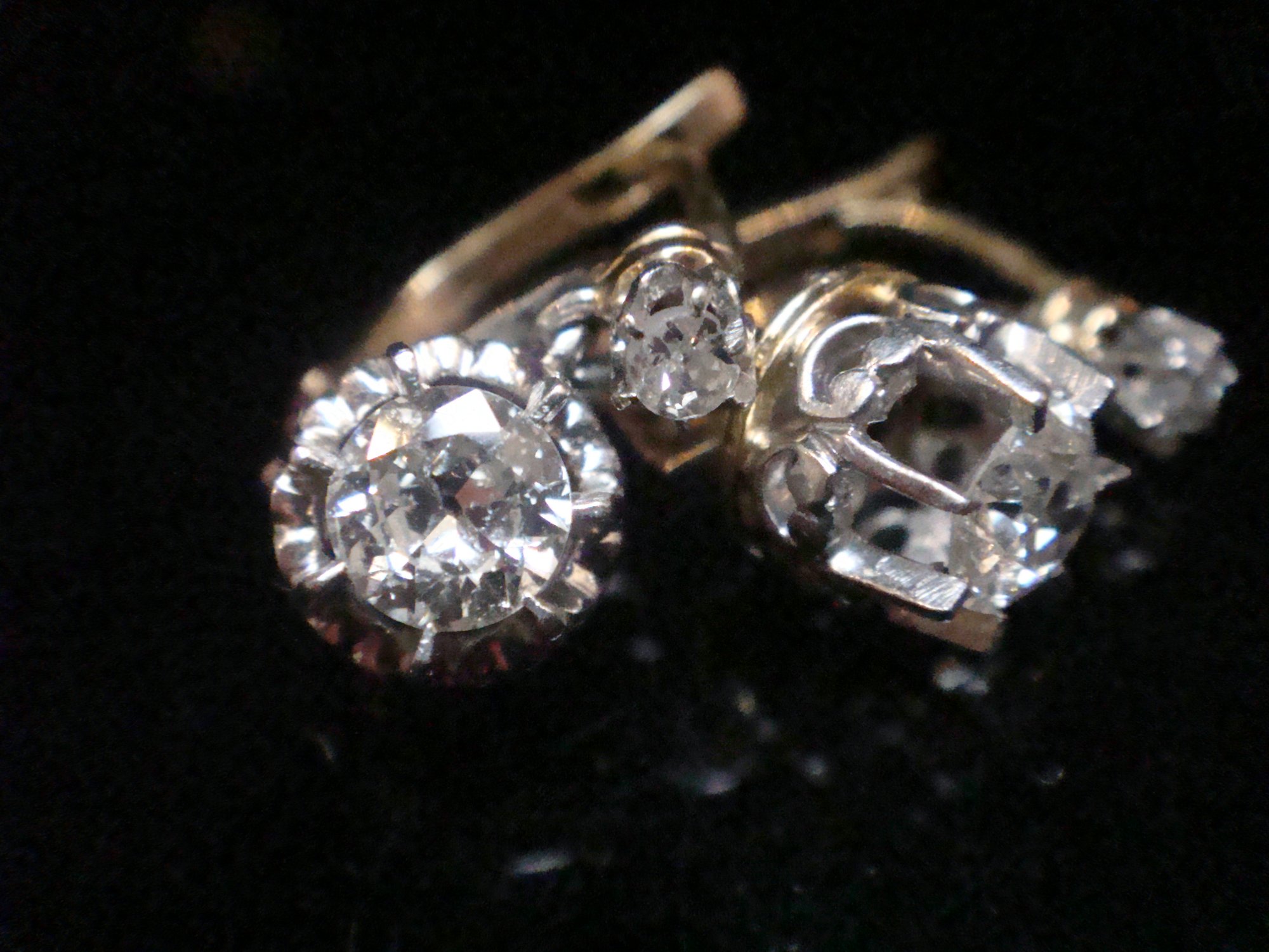 Good condition, signs commensurate of age. All diamonds original to the earrings. These are for pierced ears only