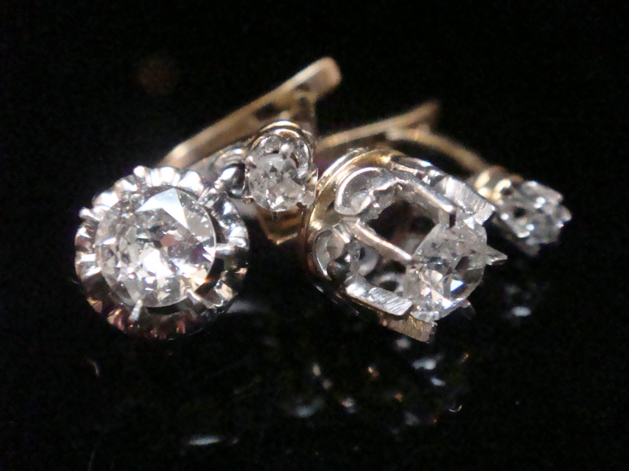 FRENCH EDWARDIAN 18CT YELLOW GOLD OLD CUT 0.90ct DIAMOND DROP EARRINGS