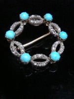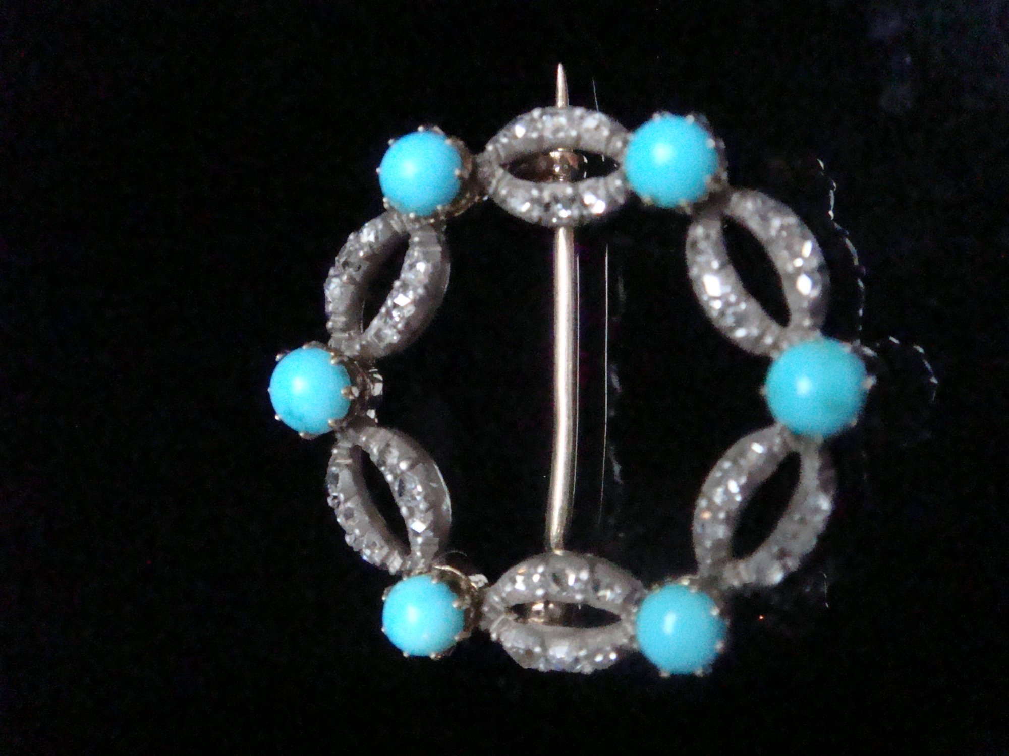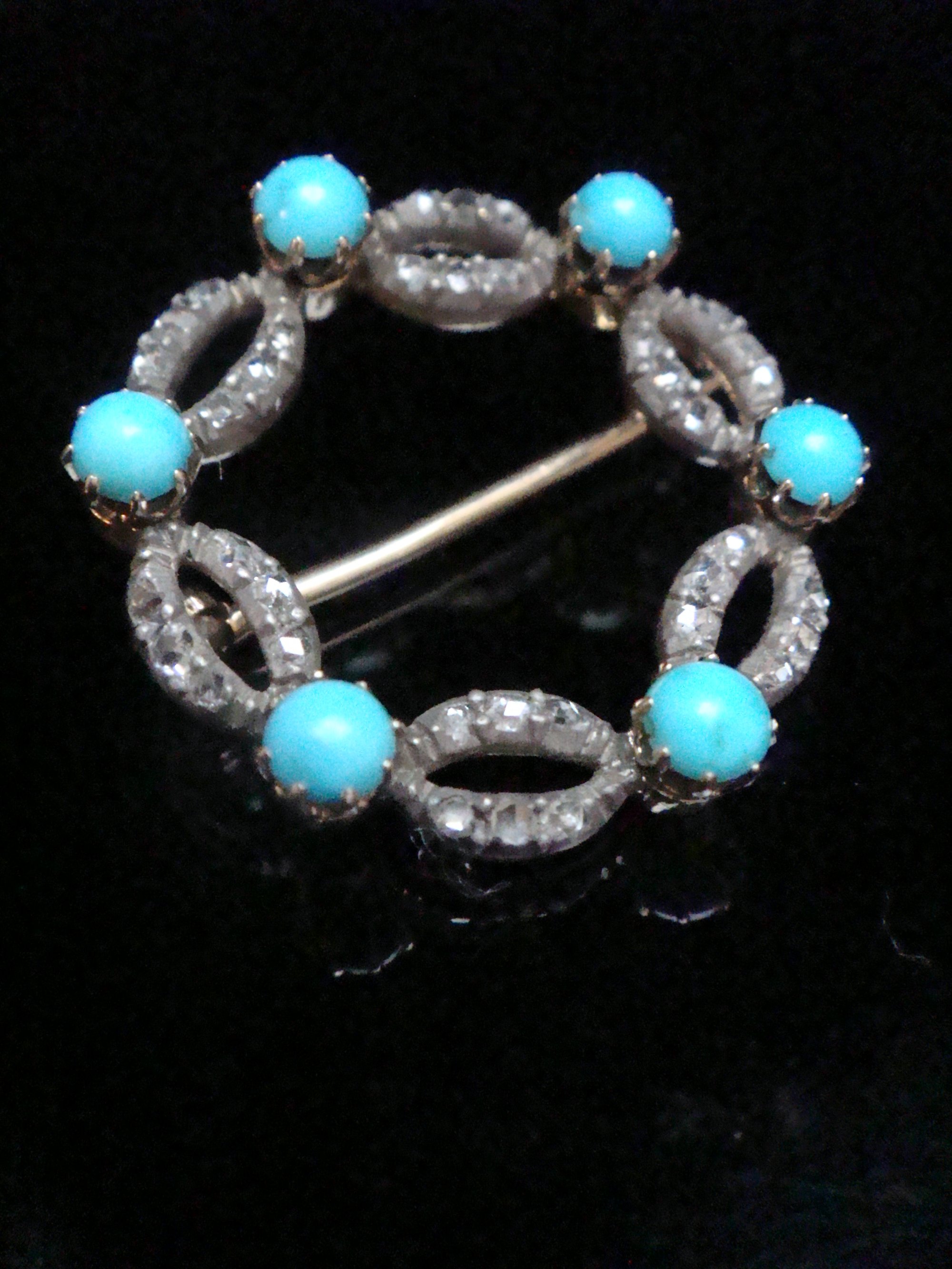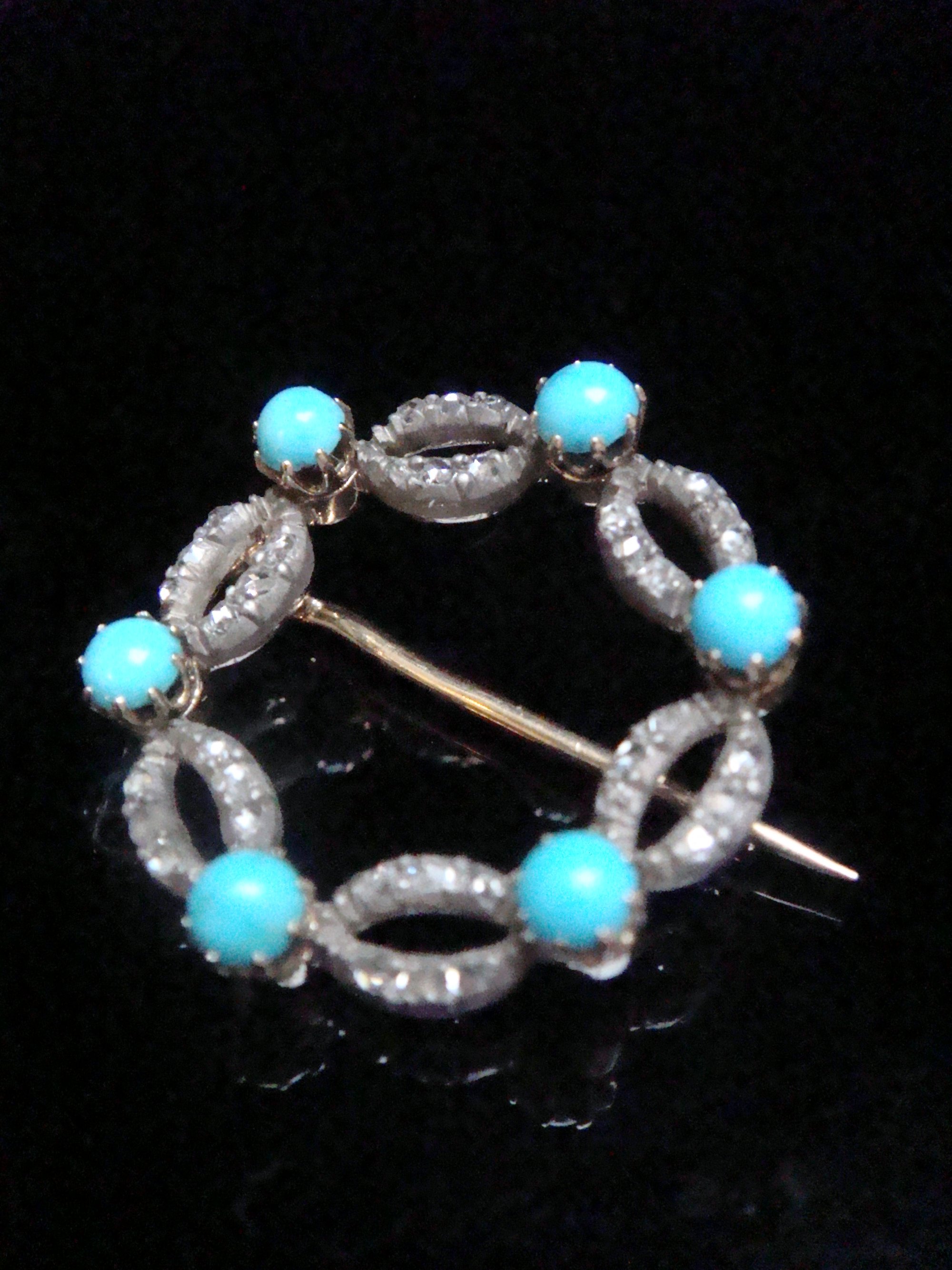 A stunning lovely original Edwardian Turquoise and rose cut diamond brooch set in 18ct yellow gold and likely silver