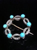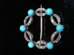 ORIGINAL EDWARDIAN 18CT AND SILVER TURQUOISE DIAMOND BROOCH 3.7G
