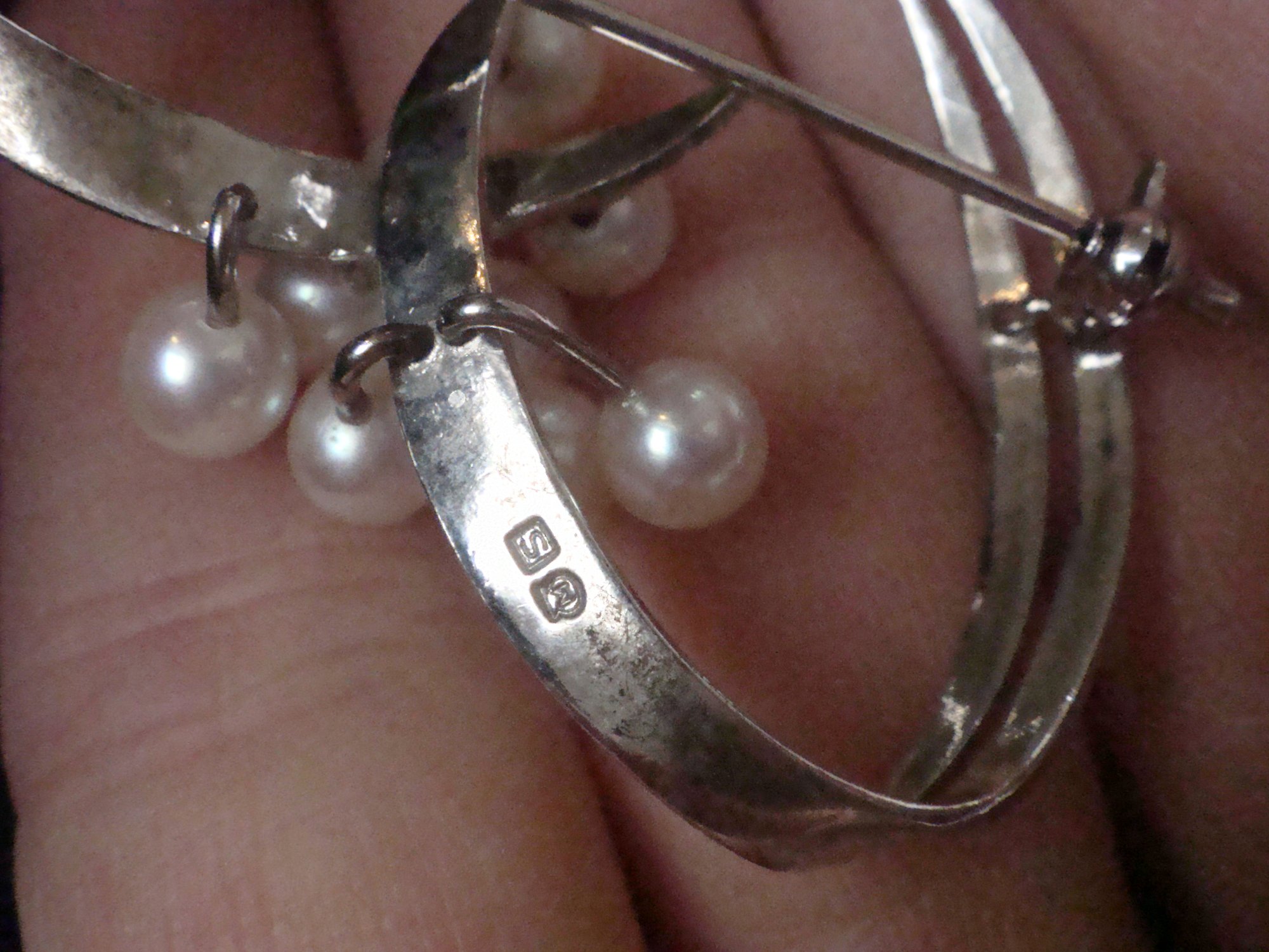 RETRO VINTAGE SILVER MIKIMOTO CULTURED PEARL BROOCH